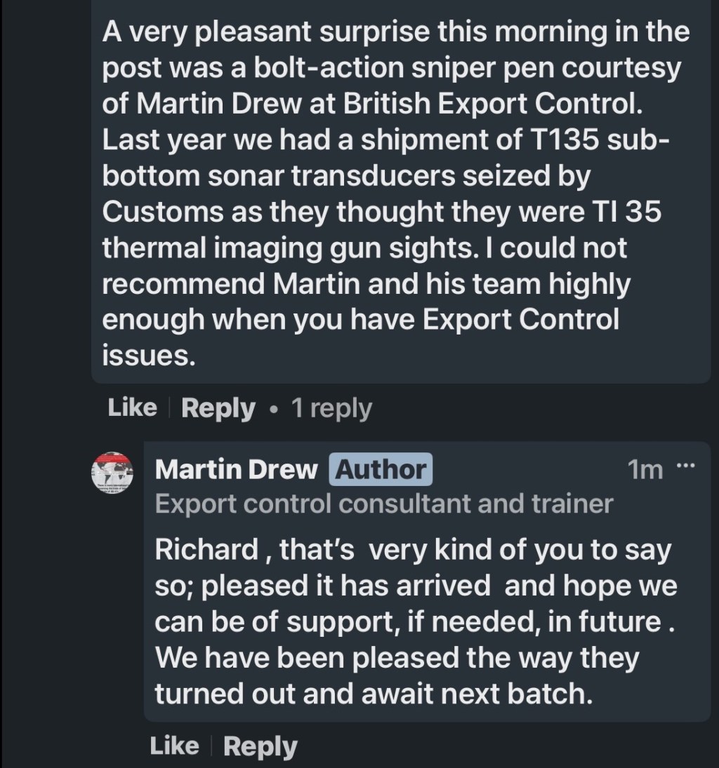 #ExportControlExperts #CorporateGiftIdeas #ClientEngagement #ReferralProgram #BusinessGrowth #InternationalBusiness #TradeLaw #ComplianceTraining #ConsultingServices #MartinDrew #HMRC #UKExports #GlobalCompliance #CustomsCompliance #RiskManagement #SniperPens #UniqueCorporateGifts #GovernmentConsulting #FinancialCompliance #ManufacturingSolutions #SmallBusinessSupport #LargeCorporations #ExpertConsultants #TradeSecurity #IntelligenceServices #LogisticsCompliance #BritishExportControl #WebsiteLaunch #NewGifts #ThankYouClients #ExportControl #CorporateGifts #ClientAppreciation #ThankYou #BusinessGifts #UniqueGifts #ReferralMarketing #InternationalTrade #Compliance #Training #Consultancy #MartinDrewMIEx #HMRevenueAndCustoms #UKBusiness #GlobalTrade #SniperPen #BoltActionPen #BusinessDevelopment #GovernmentRelations #FinancialInstitutions #Manufacturing #SmallBusiness #LargeBusiness #ExpertAdvice #TradeCompliance #Customs #Intelligence #Security #Logistics #BritishExportControl