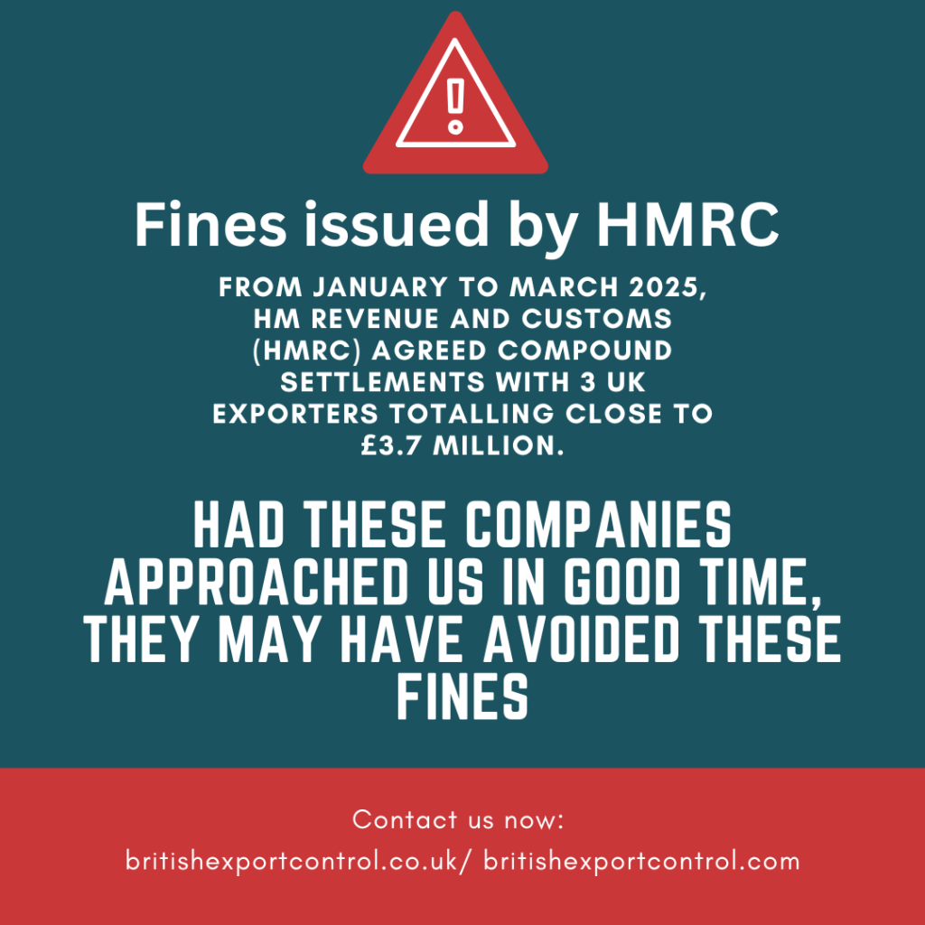 HMRC secured nearly £3.7M in compound settlements from Jan-Mar 2025 due to breaches of export controls.